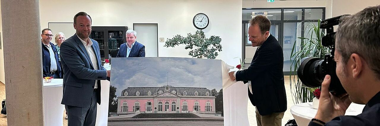 Durch den gezielten Einsatz von Farbe, Licht, besonderen Gestaltungselementen und ausgewählten Bildmotiven ist eine Umgebung entstanden, die Ruhe, Wohlbefinden und Orientierung vermittelt. Da viele Bewohnerinnen und Bewohner aus Düsseldorf stammen oder eine enge Verbindung zur Stadt haben, holen großformatige Bilder mit bekannten Düsseldorfer Motiven wie der Fernsehturm, die Rheinbrücken oder die Tonhalle ein Stück Heimat ins Haus. Ergänzt werden diese durch Natur- und Landschaftsbilder die, u.a. den Rhein oder die Rheinwiesen auf denen Schafe grasen, zeigen. Diese visuellen Impulse fördern das Wohlbefinden, wecken Erinnerungen und sprechen die Sinne an.