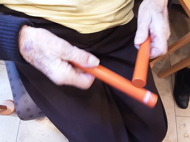 In der Gruppe „Fit mit 99 plus“ wird vor allem die Bewegung gefördert. Aber auch gemeinsames Musizieren, Rhythmusübungen und Klangexperimente stehen auf dem Kursplan. Dabei werden die Seniorinnen und Senioren motiviert, sich aktiv zu beteiligen, sich zu bewegen oder bewusst zuzuhören. Dies trägt nachweislich zur Steigerung des Wohlbefindens, zur Förderung der Konzentration und zur Stärkung des Gemeinschaftsgefühls bei. Die Angebote werden individuell angepasst, sodass auch Menschen mit starken kognitiven Einschränkungen aktiv teilhaben können. Beide Musikangebote finden wöchentlich statt und werden von vielen Teilnehmenden mit großer Freude besucht.